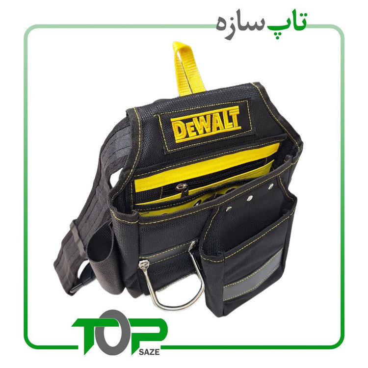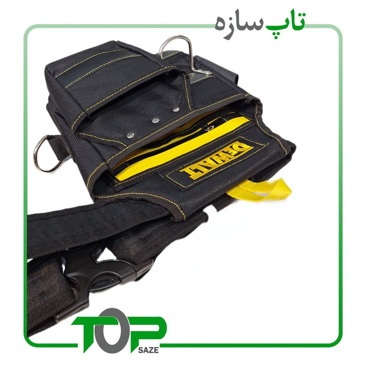 این کیف ابزار ترکیبی است از دو کیف کاربردی در یک محصول واحد . تهیه شده از پارچه پلی استر تقویت شده با ضخامت 1200 میکرو . هر دو جیب به طوری تقویت شده است که مقاوم در برابر پیچ و میخ و اشیا تیز میباشد . قلاب فلزی بسیار مقاوم از مفتول 5 برای نگه داری چکش و قیچی در ارتفاع . جیب زیپ دار بزرگ مناسب برای نگهداری وسایل شخصی مثل کیف پول ، کلید و حتی تلفن همراه. ما در این کیف تمرکز را روی دوام بالا ،طراحی کاربردی و سهولت در استفاده از ابزار با توجه به 2 جیب بودن معطوف کردیم .