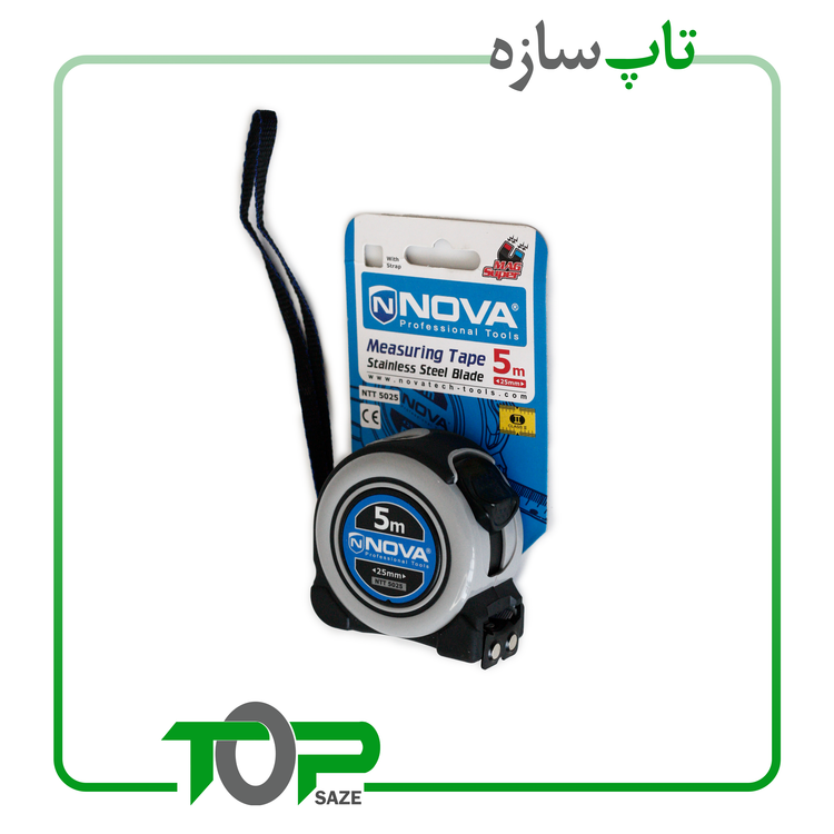 متر ابزاری برای اندازهگیری است. مدل NTT5025 نوعی از این ابزار کاربردی است که در کشورمان تولید میشود. این محصول از جنس مناسبی ساختهشده است. ابعاد و وزن این محصول به صورتی در نظر گرفتهشده که جابجایی و کار کردن با این متر بهآسانی امکانپذیر باشد. متر مدل NTT5025 یکی از محصولات و مترهای تولیدشده توسط شرکت «نووا» (Nova) است. این شرکت چند سالی است که در کشورمان، گونههای مختلف ابزار دستی و برقی را تولید میکند. این متر با تیغهای فلزی ساخته میشود. برای راحتتر شدن اندازهگیری، سر تیغه به صورت آهنربایی ساخته شده است. بدنهی این محصول از جنس پلاستیک ساخته شده و مقاومت و انعطاف بالایی در برابر ضربه دارد. برای این متر، یک قفل جهت ثابت کردن مقدار اندازهگیری شده، یک بند برای آویختن متر و یک قلاب فلزی برای وصل کردن متر به کمربند یا جیب لباس قرار داده شده است. حداکثر مقداری که با این متر میتوانید اندازهگیری کنید 5.5 متر است. این محصول در ابعاد70 × 70 میلیمتر و با 280 گرم وزن تولید میشود. از مترهایی نظیر مدل NTT5025 برای اندازهگیریهای مختلف استفاده میکنند. بسیاری از مشاغل برای اندازهگیری ابعاد مختلف از این ابزار کاربردی استفاده میکنند